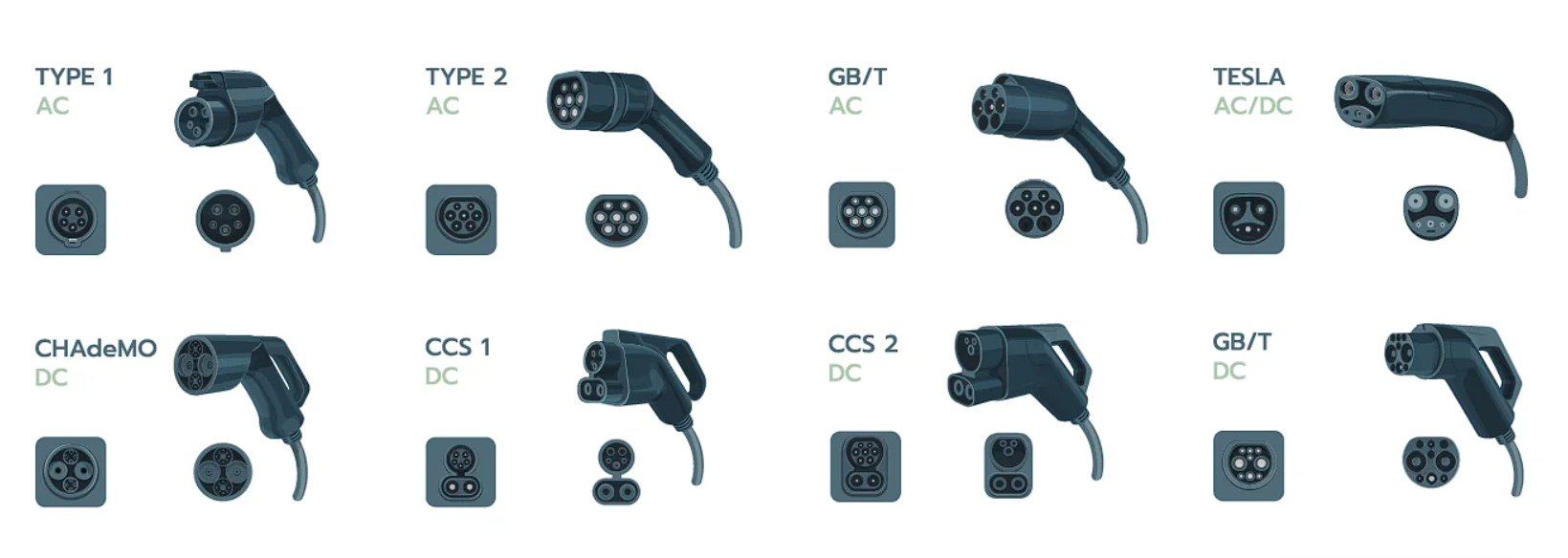 Մակարդակ 1/2-րդ մակարդակի լիցքավորման համար.Օգտագործեք J1772 միակցիչը (տարածված Հյուսիսային Ամերիկայում) կամ 2-րդ տիպի միակցիչը (տարածված է Եվրոպայում):